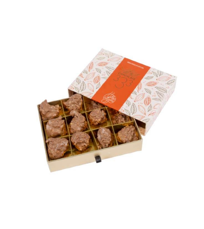 Tamamen el yapımı içerisinde yer alan fındık parçaları ve eşsiz kremasıyla Chocolate 333 Rocher, çikolatanın en cazip halini sizlere sunuyor... Fındık parçaları ve eşsiz çikolatanın Chocolate 333’ın enfes tarifiyle buluşması Sütlü Fındıklı Rocher Çikolata sizi benzersiz bir lezzet yolculuğuna çıkaracak. Sütlü çikolata ve fındık ile uyumunu uzman tarifiyle tamamlayan Chocolate 333 Sütlü Fındıklı Rocher Çikolata ile benzersiz çikolata deneyimine hazır mısınız?