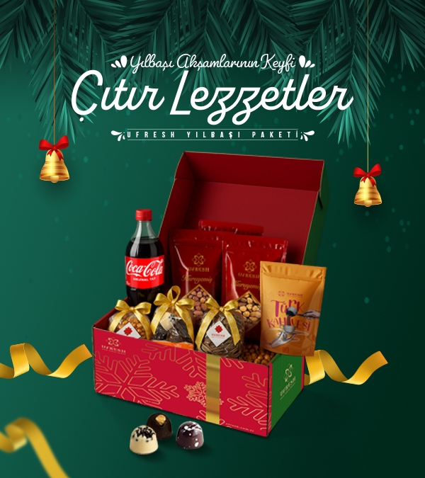 En taze ve en kaliteli kuruyemişlerden oluşan avantajlı yılbaşı paketi Ufresh'de. En çok sevilen ürünlerimizden oluşan paket içeriğimize indirimli fiyatla satın alabilir veya sevdiklerinize hediye gönderebilirsiniz.